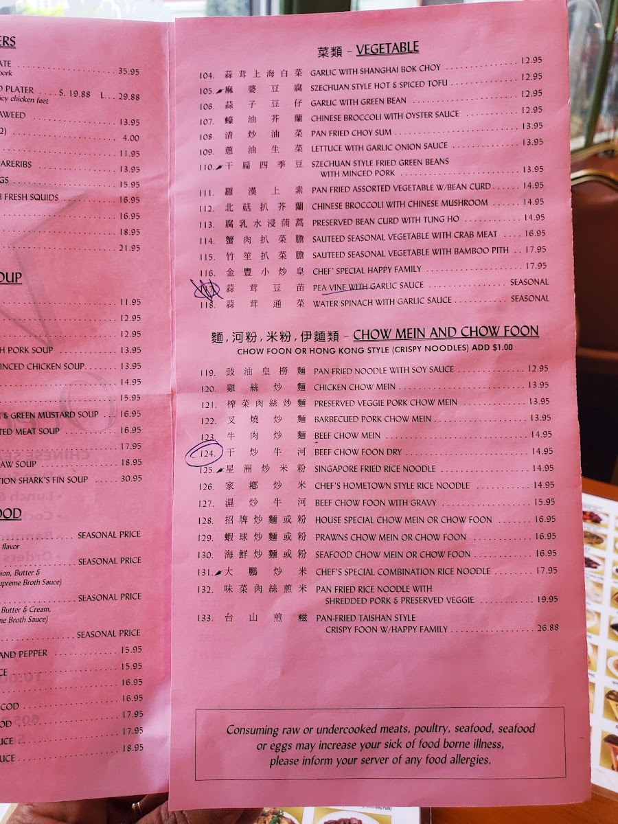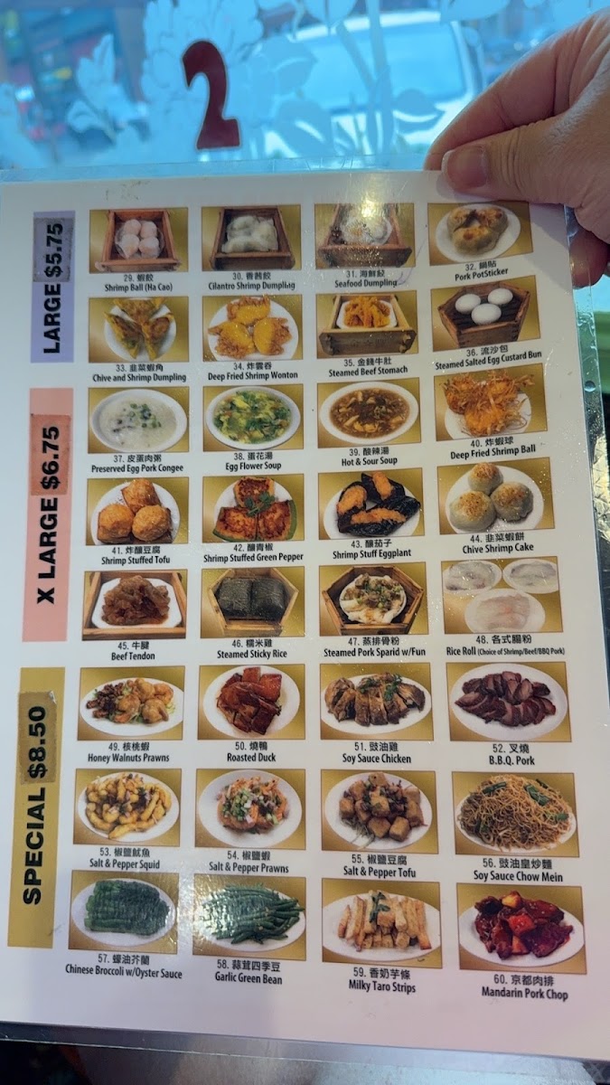 If you’re in the mood for something heartier, indulge in a bowl of their B.B.Q. Pork With Rice Noodle Soup for $18.50 or the succulent Roast Duck With Egg Noodles Soup priced at $22.50. Each dish boasts a rich, aromatic broth that will warm your soul, perfectly paired with the delicate notes of their Jasmine Tea for a mere $2.50.